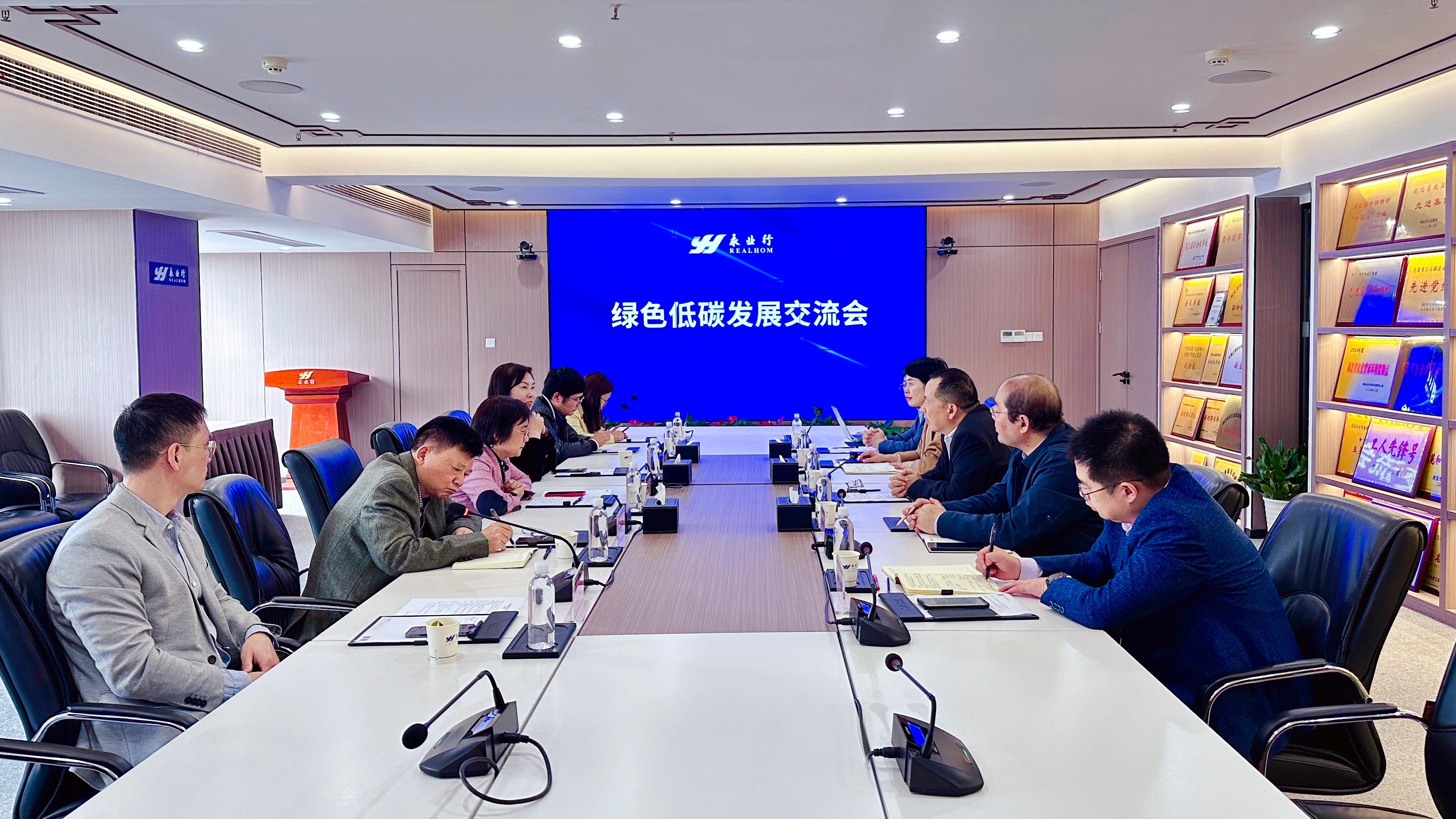 2024年10月27日,全国政协常委、湖北省政协副主席王红玲一行莅临永业行调研指导工作,就绿色低碳发展开展座谈。省政协常委、永业行董事长潘世炳热情接待并参加座谈交流。