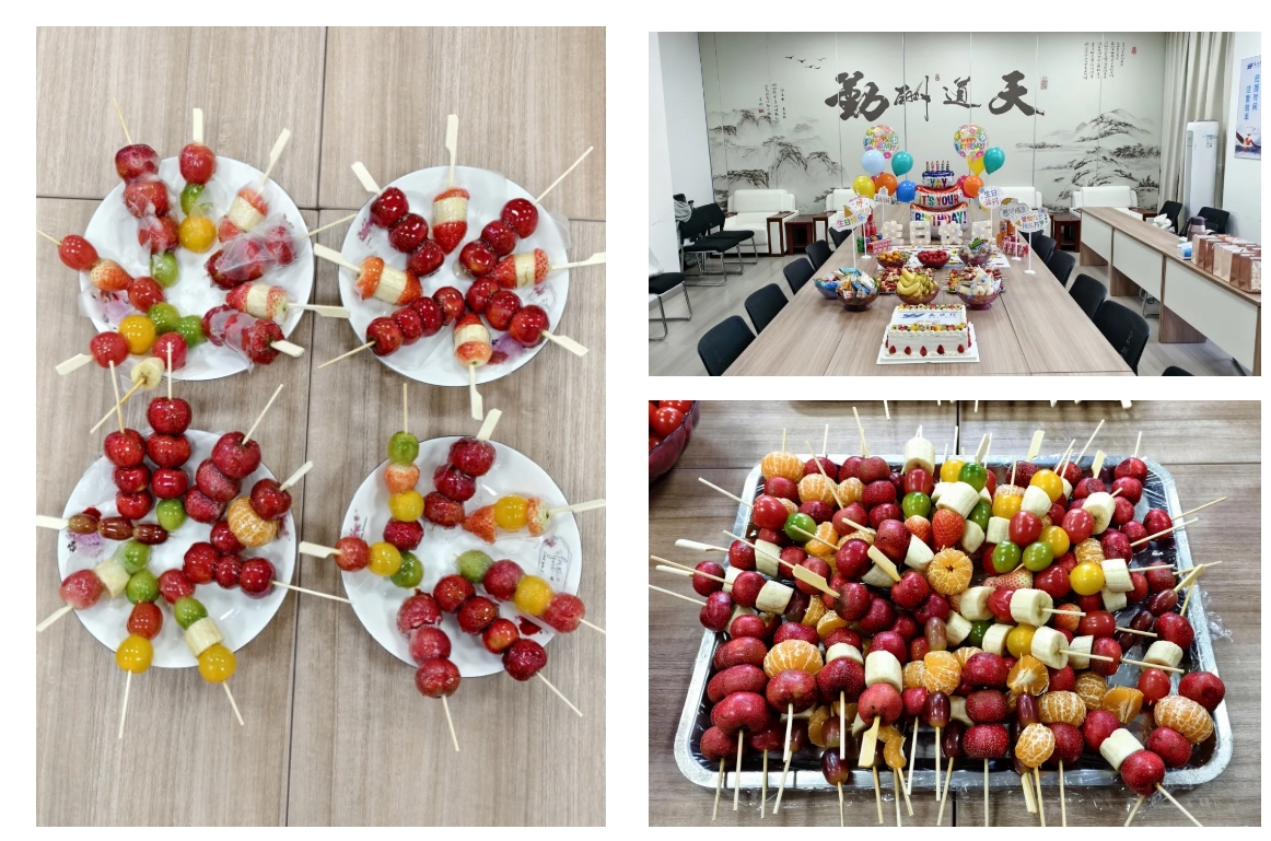 生日会活动后,四季度寿星们在员工餐厅参加了冰糖葫芦DIY活动,现场准备了多种水果: