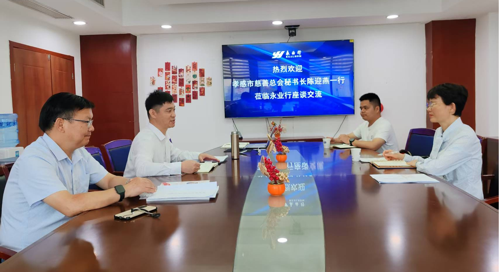 孝感市慈善总会秘书长陈迎燕一行莅临永业行座谈交流
